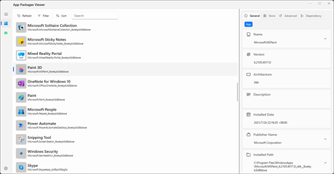 App Packages Viewer is a tiny tool for Windows 10/11 users to browse the installed app packages. It helps developers to quickly locate where their apps deployed and navigate to the local storage folder of apps in development.