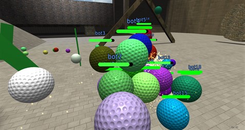 First person shooter for kids using balls. Based on bullet physics, the graphics look great on a mobile device. The controls are all custom made and with multi touch support. The player can switch to thirdperson view at any time. The number of AI bots is configurable, including their skill.