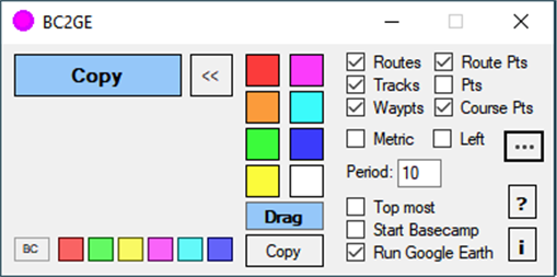 BC2GE passes clipboard data pasted from Garmin BaseCamp or MapSource to Google Earth. You can also drop FIT, GPX, and TCX files to view them in Google Earth.