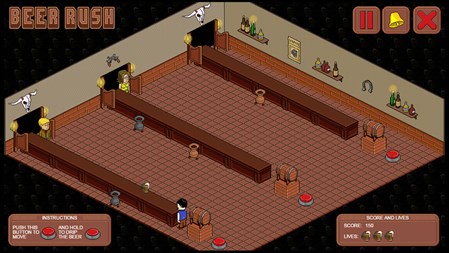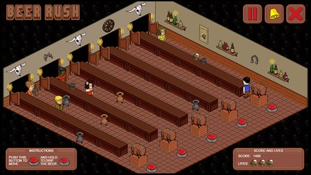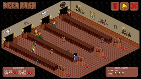 The goal of the game is to serve beers to the customers as they slowly advance towards the barman. If any customers reach the end of the bar or a returning beer is not catched by the barman, the player loses a life.
