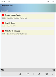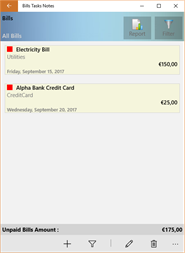 - You can apply basic filters on the results. - You have the option to enable notifications on Tasks and Bills. - You can enable displaying the next upcoming Bill or next upcoming Task on the App's Tile. - You can keep track of your daily routine.