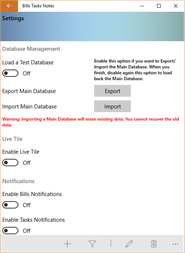 This is a simple SQLite Database App for your Bills , Tasks and Notes. The file is stored only locally on your device (no cloud sync).