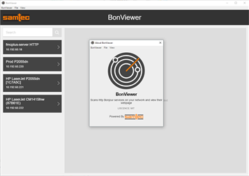 BonViewer is a http Bonjour services scanner for your local network that enables displaying services custom http content. Zero installation is required other than installing BonViewer. To use, simply scan for all services on the network or enter the name of the service that you wish to find to filter the results (Note: Searches by start of the name).