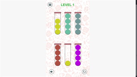 [Instructions] - After the game is launched, click the Play button to enter - Select one of the three challenge levels: Easy, Medium, or Hard. Each level offers 40 sets of challenges - Tap any bottle to put the top ball into another glass, which either is empty or contains balls of the same color - You can only put a ball in another bottle if it is topped with balls of the same color and there’s enough space in the bottle for the new addition - When stuck, rearrange bottles and balls without any penalty. So take your time to complete the sorting task