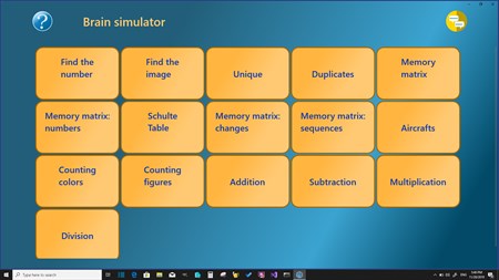 The game "Brain Simulator" has become completely free, all simulators are free and do not require subscriptions. The game "Brain Simulator" is a complex of fascinating and interesting simulators for the development of memory, attention, concentration and thinking: "unique", "duplicates", "find the number", "find the image", “memory matrix”, “memory matrix: numbers”, “Schulte table”, “memory matrix: sequences”, “memory matrix: changes“, airplanes”, “color counting”, “figure counting”, “addition”, “subtraction”, “multiplication”, “division”. There are two modes for developing memory, attention, concentration and thinking in the game: training mode and mode In training mode, the game can work without an Internet connection. You can adjust the difficulty and duration of the exercise, keep statistics of your exercise. In the competition mode you compete with other participants on all kinds of simulators.