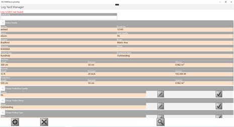 This App if for supervisors to change details of Timber Logs whilst out in the Log Yard instead of having to go back to their desk to do so. This App is a product of the TIMBERplus program suite developed by Business Software Solutions GmbH. It is not working without TIMBERplus System.