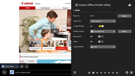 - When printing from Windows Store apps and Windows apps, you can configure detailed print settings. - You can access the Canon support site and software download site. - It can launch the Remote UI, which is software for managing laser multi-function devices and laser printers using a web browser. - It can display the status (paper shortages etc.) of laser multi-function devices and laser printers. - For information on how to launch the Remote UI and display status information, refer to the [Regarding use of this app] items in the settings screen after installing this application. *Some functions may not be usable depending on the model and setup state of the laser multi-function device or laser printer you are using. *The UFR II/UFRII LT V4 Printer Driver may not be able to be used, depending on the region.