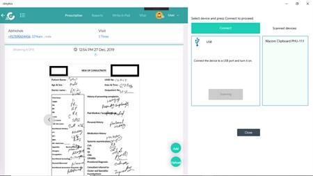 Clinytics offers seamless service to record, sync, track, and analyze prescription data. Doctors can use their own printed stationary and over the device slate.