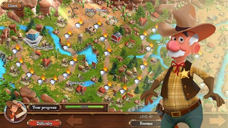- HELP Ted & Catherine and friends in their adventures - EXPLORE the Wild West in this fun and addictive time management game - MEET peculiar character and follow the exciting story - Will Ted and Catherine fall IN LOVE? - PUT the bad guys where they belong - behind bars! - 40 EXCITING levels to master and HUNDREDS of quests - 3 DIFFICULTY MODES: relaxed, timed and extreme - FIND hidden treasures - WIN achievements - GORGEOUS high definition visuals and animations - Step-by-step tutorials for beginners