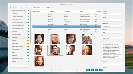 Features: • View and Edit database Data, include SQLite, Access, MS SQL Server, MySQL, PostgreSQL. • Open local SQLite and Access Database, show tables and views. • Connect to the database server with the necessary drivers. • Sort on table columns. • Pagination to view all table rows. • Show photo or image in Database tables. • Basic search on table columns. • Data Speak features.