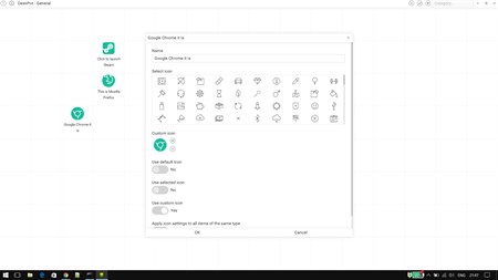 Avoid desktop clutter with DeskPot - simply drag and drop files/folders to DeskPot window to create shortcuts and organize them into categories. Add any number of categories and access them through dropdown menu or simply browse with mouse wheel. Each category can be used as virtual desktop - you are free to rearrange icons, select custom icons, rename shortcuts and launch files. From now on, the only icon you need to keep on your Windows dektop is DeskPot shortcut!