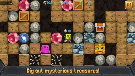Dig as deep as you can to collect shiny gems and treasures! But dig carefully, as the FALLING BOULDERS can smash and crush your miner. Challenge your friends and see who can dig the deepest!