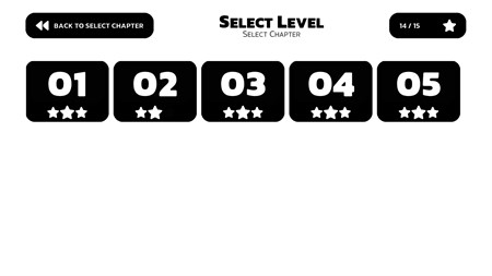 Simple Main Menu Items To Collect Danger Zone Breakdown of Levels into Chapters Level Unlock System with collected stars Progress Save System Sounds and Music