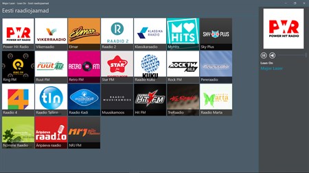 Suurim valik Eesti raadiojaamu: DFM, Elmar, HappyU, Hitmix, IDA Raadio, Kaguraadio, Klassikaraadio, MyHits, NRJ FM, Pereraadio, Power Hit Radio, Raadio 11, Raadio 2, Raadio 4, Raadio 7, Raadio Duo, Raadio Kadi, Raadio Kuku, Raadio Tallinn, Retro FM, Ring FM, Rock FM, Ruut FM, SSS-Radio, Sky Plus, Sooviraadio, Star FM, Tagatuba FM, TreRaadio, Tõrva Raadio, Vikerraadio, Võmba FM, Äripäeva raadio