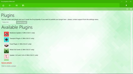 Use it as a companion app to learn more about various Minecraft objects including blocks, commands, crafting recipes, mobs and more. Add your own items with a special Plugin menu.