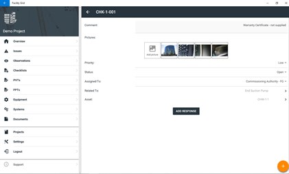 Facility Grid is a cloud-based commissioning software platform that maintains a portfolio of digitized information related to the equipment and systems throughout a facility and can be easily accessed any time from any location to address specific issues. The extent of use of Facility Grid can be tailored to your needs – from a modest cloud-based document management repository and issue tracker to a fully-fledged Dynamic COBie Based User Interface that integrates the Building Information Model (BIM) into the Operations and Maintenance (O&M) program to ensure effective management of individual facilities and campuses.