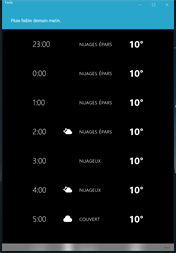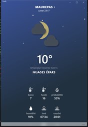 Features: • Current weather based on geolocalization • Add multiple locations • Hourly forecast • Daily forecast • Live tile • Lockscreen text status