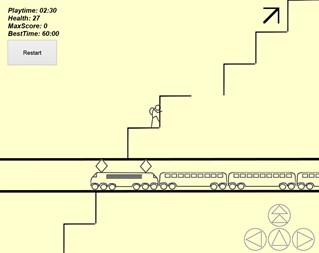 Welcome to Flight of Stairs. Your aim is to climb the stairs and reach the top level in the shortest time without losing too many points. Underway you'll have to dodge some obstacles and avoid falling into some traps. You'll need both skill and luck. Your best score is kept for the next time so you can continue to better yourself each time. You can now share your score online to compete with other players. Enjoy!