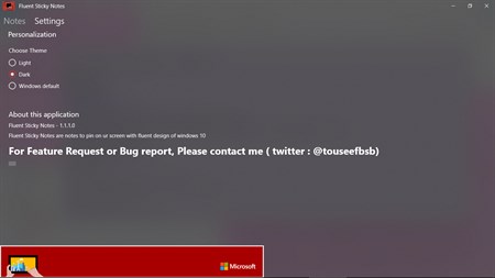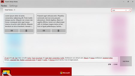 A Sticky Notes app with new Fluent Design of Windows 10, Which also allows you to pin the notes in Compact Overlay mode so you can keep using other apps but notes can still say on your screen ( picture in picture mode ), and also built in search filtering of your notes.
