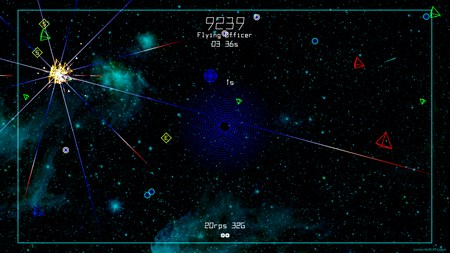 An early 1980s-style arcade game using vector graphics. This is a game with a chaotic maelstrom of objects to destroy, tokens to collect, and pilots to rescue over 64 levels. The aim of the game is simply to achieve the highest score.