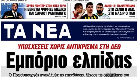 Front pages of Greek newspapers. (internet connection is required)
