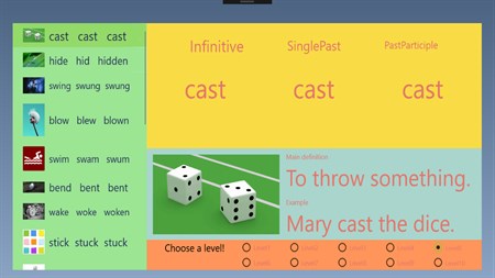 The ultimate app for learning all relevant English irregular verbs. Have fun playing our games and solving our challenges!