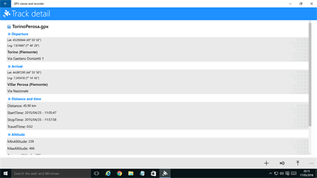 With this app you can view GPX files (routes, tracks, point of interest) on a Windows 10 pc. If you use a smartphone, you can also follow you and draw the route on the map, then save it in the device. THIS WAY YOU CAN RECORD A TRACK THROUGH YOUR SMARTPHONES, AND THEN VIEW IT ON YOUR PC LARGE SCREEN. You can import/export a local file (track route) in the documents folder of the device. You can also view a previously recorded GPX file or create a new one.