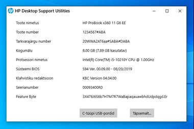 Tarkvara HP Desktop Support Utilities pakub kasutajale eelnevalt valitud süsteemiteabe loendit.