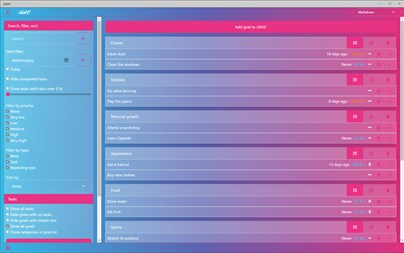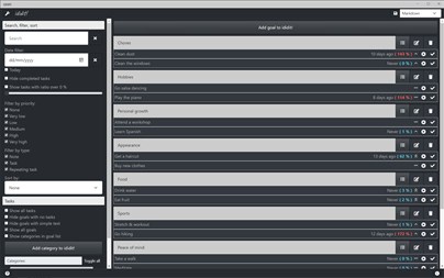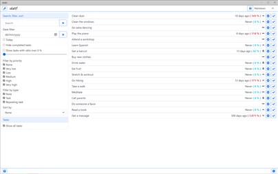 ididit! doesn't use a streak counter so you won't feel demotivated when you skip a habit once - you won't have to start your streak from zero. It tracks the time elapsed since your last task completion and compares it to the task's repeating interval. A task with a 10 day interval which is 2 days overdue is at 120% - but a task with a 4 day interval which is also 2 days overdue is at 150%. This allows you to easily prioritize your tasks based on their level of urgency.