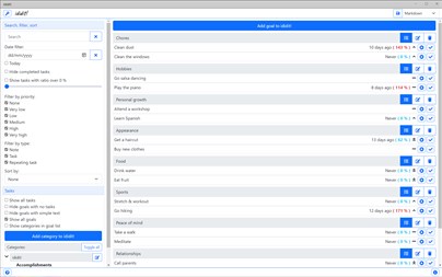 Define your goals by organizing your notes, tasks and habits all in one place Use categories and sub-categories to group similar goals Keep track of what is important by assigning priorities