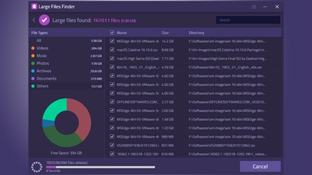 Clean large files to save disk space Data Representation in a Chart Easy to use interface No need of an internet connection Quick and efficient
