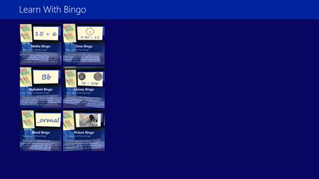 Learn with Bingo is a game for playing with a group of people the computer calls out Sums, Letters etc. and the players mark off the answer on their card if they have it. It was originally made for a learning disability group called Destined were it is used regularly.