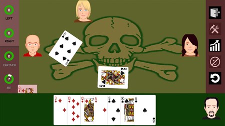 Likha is a 4-player game similar to "Hearts”. Played in teams, each player must avoid capturing the Likha cards (the Q of spades and 10 of diamonds). The game involves you, the sole human player, 1 computer partner and 1 competing computer team.