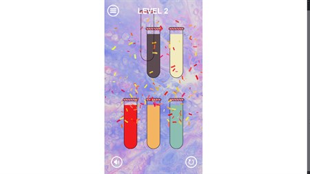 [Instructions] - After the game is launched, click the Play button to enter - Select one of the three challenge levels: Easy, Medium, or Hard. Each level offers 40 sets of challenges - Tap any bottle to put the top liquid chunk into another glass, which either is empty or contains liquids of the same color - You can only put liquids in another bottle if it is topped with liquids of the same color and there’s enough space in the bottle for the new addition - When stuck, rearrange bottles and liquids without any penalty. So take your time to complete the sorting task