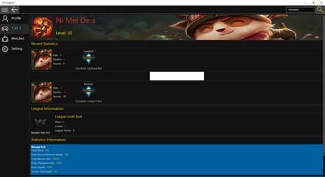 LOL Game Info is a free, small handy, LOL game information checking app that including recent game info, matched game info, ranked game info. It also has unique feature: '1 VS 1' that support summoner to versus with other summoners.