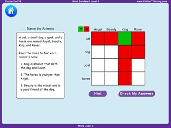 Students carefully analyze each Mind Benders® story and its clues, identifying logical associations between people, places, and things. The key is to start with the most obvious associations, then deduce less obvious associations until everything finally fits together.