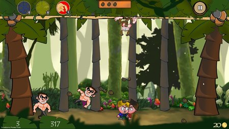 Scroll through the liana, arm yourself with coconuts reloading in the coconut trees and knock down all the villains to avoid being captured.