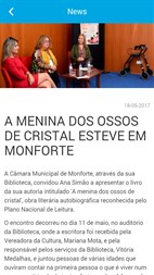 Application that aims to promote news and events, spread of information and tourist and cultural promotion of the municipality of Monforte. The group of features will soon be available and the municipality will be able to communicate and receive direct feedback from the citizens, by providing some services. Key features: . Consultation of local information . Cultural agenda . Consultation of news, . Notifications; . Weather informations; . Sugestions; . Protection Civil; . Communicate Occurrences; . Water counter reading; . Audience with the Executive; . Large waste items collection.
