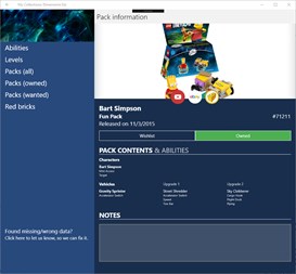 The app has been evolving and it is gaining features frequently. Stuff that has been added: * Overview of abilities and what characters & packs have what abilities * Overview of the Red brick + track which ones you have found & bought. * Level information like locations, citizen in peril & guides