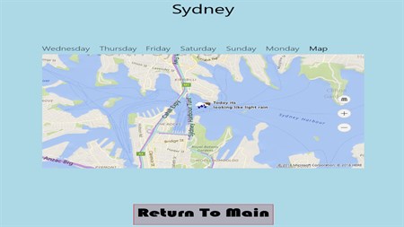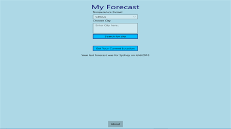 A forecast can be obtained by searching any worldwide city or by using the applications built in location service to get the weather forecast for your exact location.