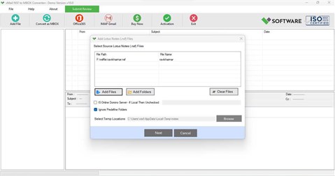 vMail NSF to MBOX Converter is converting Lotus Notes -NSF File Mail Items to Thunderbird MBOX File format, PDF, EML, MSG, PST and also Import NF Mails into Office 365 Mailboxes. vMail NSF to MBOX Converter supports for Apple Mail, Thunderbird, Spice bird, Sea Monkey, Netscape and Eudora email clients. vMail NSF to MBOX Converter supported lotus notes or HCL Notes Versions: -12, 11, 10.0.1, 9.0.1, 9.0, 8.5, 8.0.2, 7.0, 6.5 and 6.0. etc. - *.NSF Files. Basic Requirement – 1) IBM Notes Client must be installed on your Local System 2) NSF Database should be in healthy state (not corrupted).