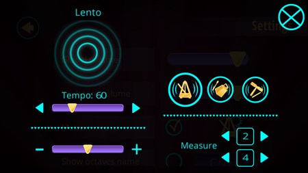 The application can also be used as a piano without learning mode. You can set the amount of visible piano keys from 8 to 16. If it is more comfortable for you, set the key signature. You can also turn on the metronome.