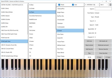 Librarian and Editor for Roland INTEGRA-7 synthesizer module. This app needs a Roland INTEGRA-7 synthesizer connected via USB or via a MIDI interface connected to the INTEGRA-7 via 5-pin connectors, and can not be used otherwise. Select Expansion module (that are loaded) or synthesizer type, then instrument category and finally an instrument. All information of the instrument is shown and your INTEGRA-7 will be set to that instrument. Use favorites to collect favorite sounds in folders. Save all in a file on your computer if you like. Edit all editable sounds or create new ones. Your INTEGRA-7 will be updated live, and you have an option to store in a tone (sound) slot. You may also save as an XML file to your computer. Edit studio sets, system settings and store in a free slot in your INTEGRA-7. This can also be saved as an XML file to a file on your computer. Edit motional surround. Place the instrument around you and experience sitting in the middle of an orchestra right in your own livingroom.