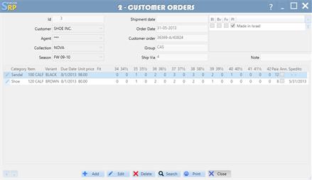 ERP software for medium-sized shoe factories manages orders, bill of materials, delivery notes, packing list invoices and many more. The program is sold as subscription with monthly fee € 49.99 or equivalent, with a trial period of 30 days.