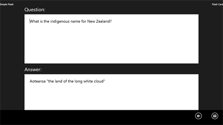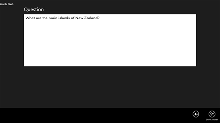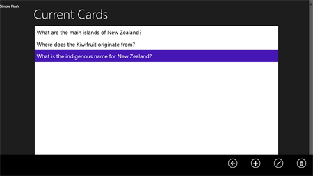 A simple flash-card application. Lets you make and maintain your own set of flash cards, and test yourself on their contents. A great (and free!) way to study for tests. when your mum/boyfriend/cat is not interested in helping you out :-)