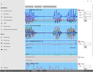 SmartBug2 application controls the new MD-45686-S multi-sensor wireless module from TDK InvenSense via BLE, USB or WiFi link. It can collect raw sensor data and run various motion algorithms including Spatial Audio head tracking, sensor fusion, APEX, air mouse, asset monitoring etc.