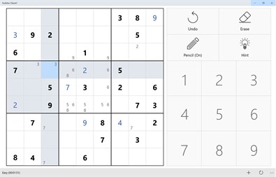 · Challenge yourself figuring out your mistakes, or enable Auto-Check to see your mistakes as you go · Make notes to keep track of possible numbers. Each time you fill in a cell, notes are automatically updated! · Highlight duplicates to avoid repeating numbers in a row, column and block · Hints can guide you through the points when you are stuck