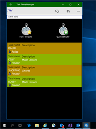 - No ads; - Task templates; - Create a new task in one tap (click); - Pause and restart as many times as needed; - Choice to deduct the breaks; - Choice to override the total task time for billing purposes; - Save closed tasks; - Search and edit closed tasks; - Generate statistics; - Timesheets; - Bill individual task or cluster of tasks; - Save invoices and timesheets to PDF; - Export task data to CSV files for further archiving or processing with other apps like MS Excel or MS Access; - Support for billing in any foreign language; - Same great look on all your Windows 10 devices: PCs, Tablets, and Phones.