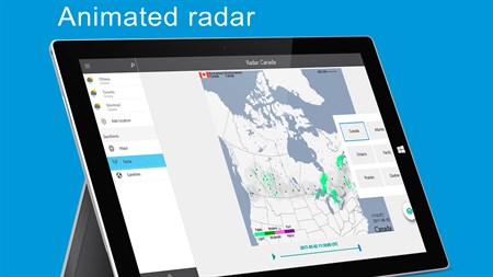 Weather 14 days. Forecasts, Maps, Satellites, Radar and Live Tile or Widgets. Weather 14 days is completely FREE with the latest weather information for Canada and the rest of the world. Featuring detailed 14 day forecasts, maps, satellites and radar. Compatible with any Winwdow 10 smartphone, tablet, Surface or PC. Hailed by fans meteorology, the app features a modern layout based around Google’s Material Design making it very quick and easy to use.