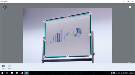 TruCapture is a camera application with special features to improve the readability of whiteboards, books, etc. in photographs taken by TruCapture. Those features include reflection reduction, color enhancement and cropping. This application recognizes the target from the photograph and performs reflection reduction, color enhancement and cropping of the target and then lets you save the changed photograph.